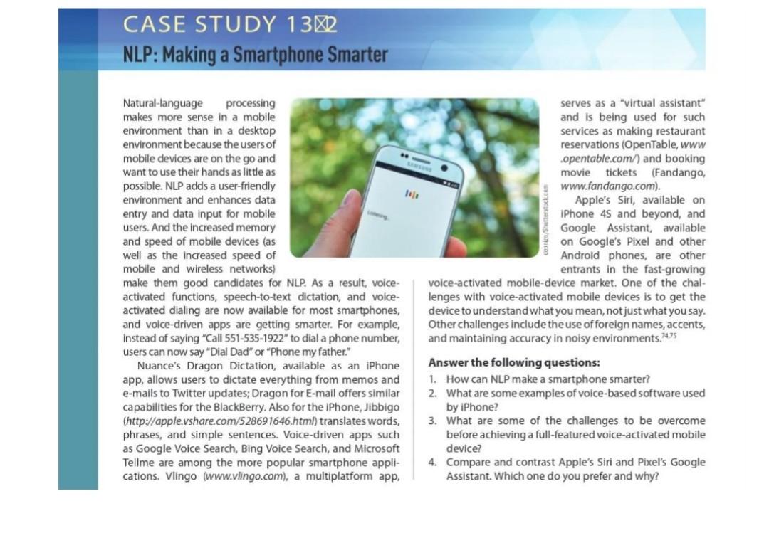 Solved Case Study 13 Nlp Making A Smartphone Smarter Chegg Com